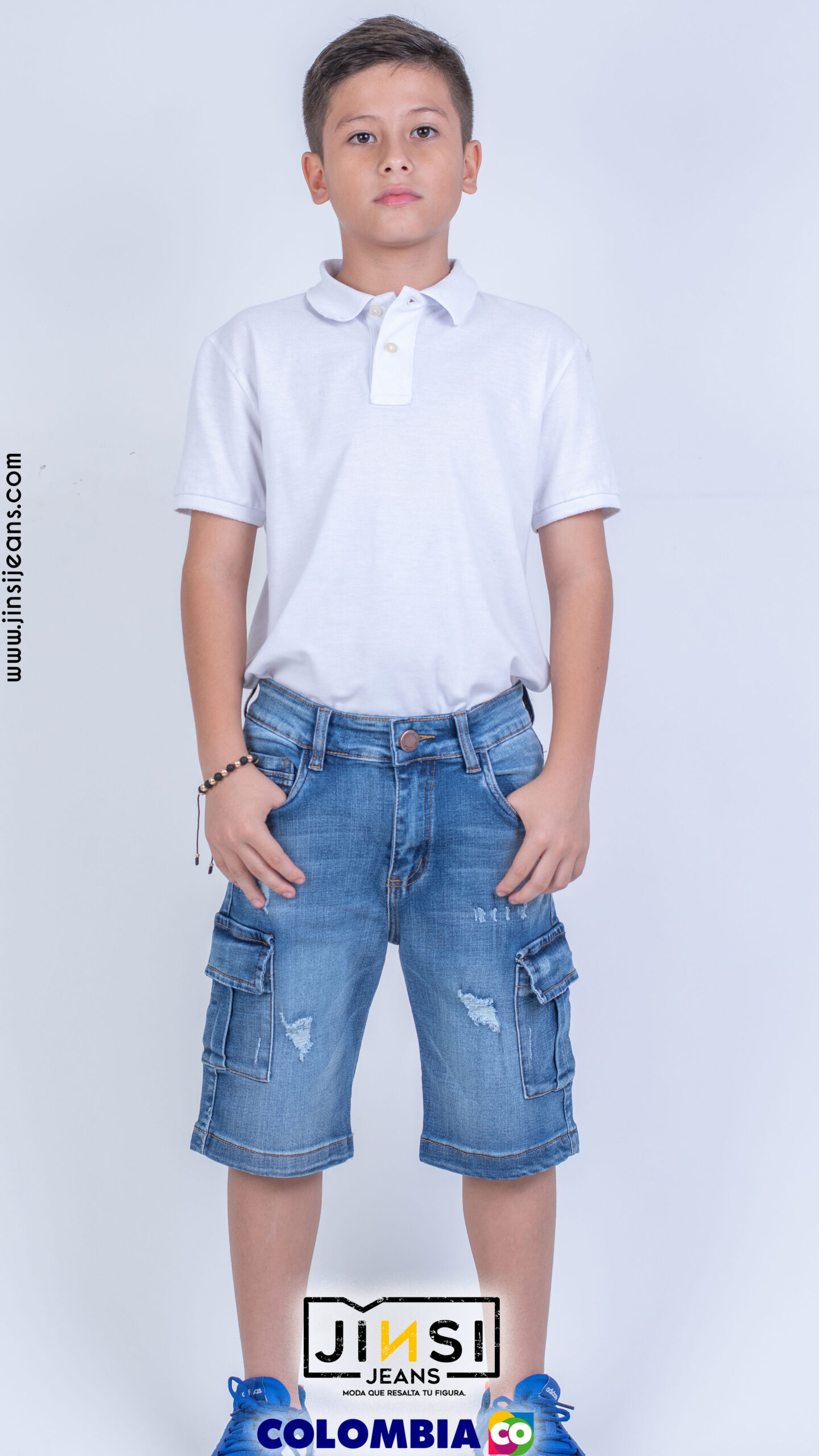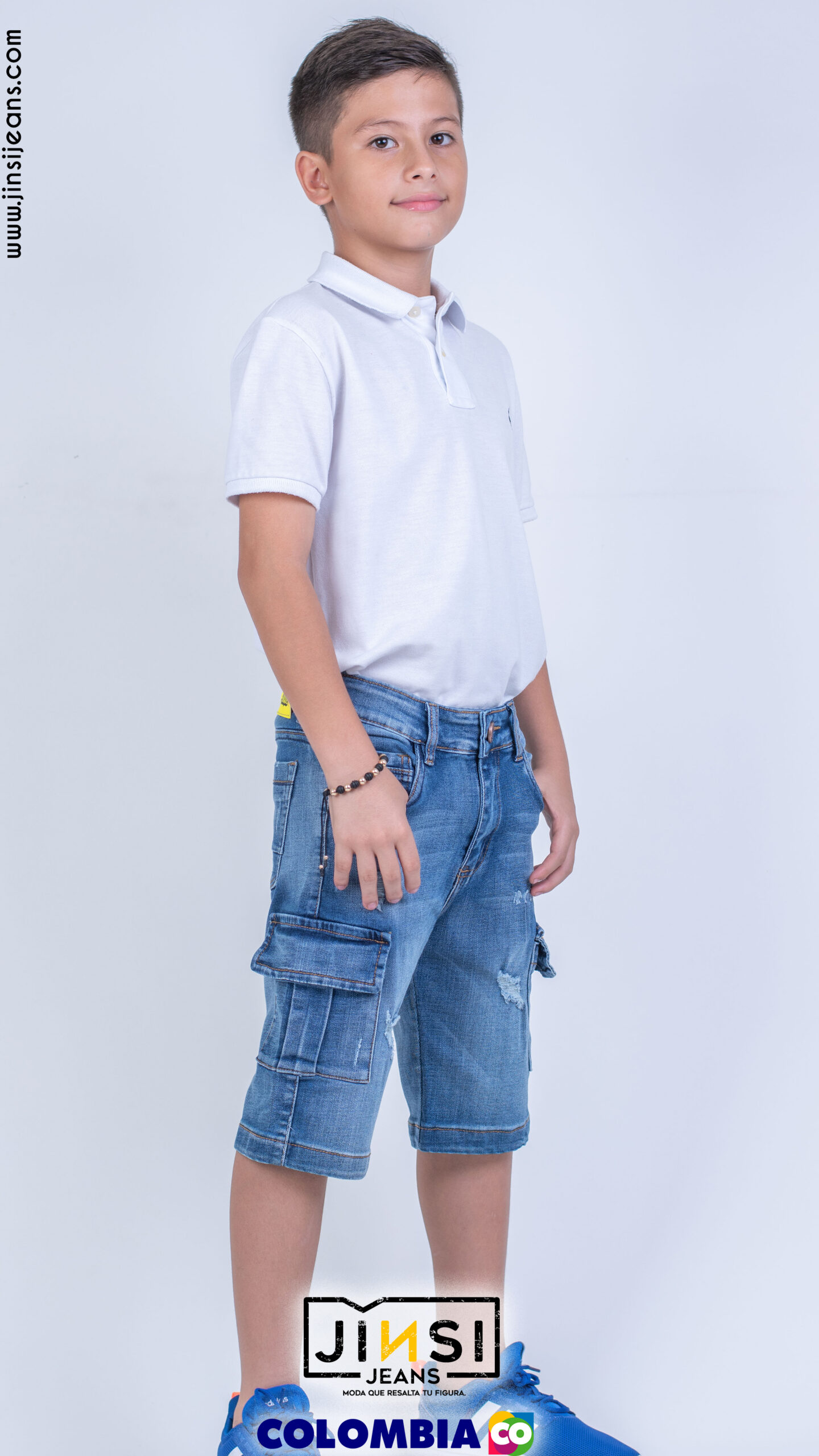 Pantalón corto jean para niño elaborado en tela Denim (Mezclilla), diseñado para dar comodidad y frescura a la prenda manteniendo objeto de mantenerse infantil. Bermuda para niño confeccionado con telas con propiedades semistrech que permite una mediana elongación y con tolerancia a procesos de lavado. Alta solidez del color y brillo de la tela. Pretina anatómica. Pantalón short para niño.
