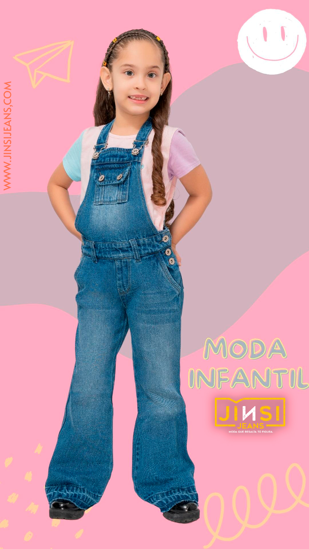 overol denim para niña, premium, pantalon semi strech y semi rigido según estilo diseñado para resaltar dar comodidad y flexibilidad manteniendo un estilo infantil.