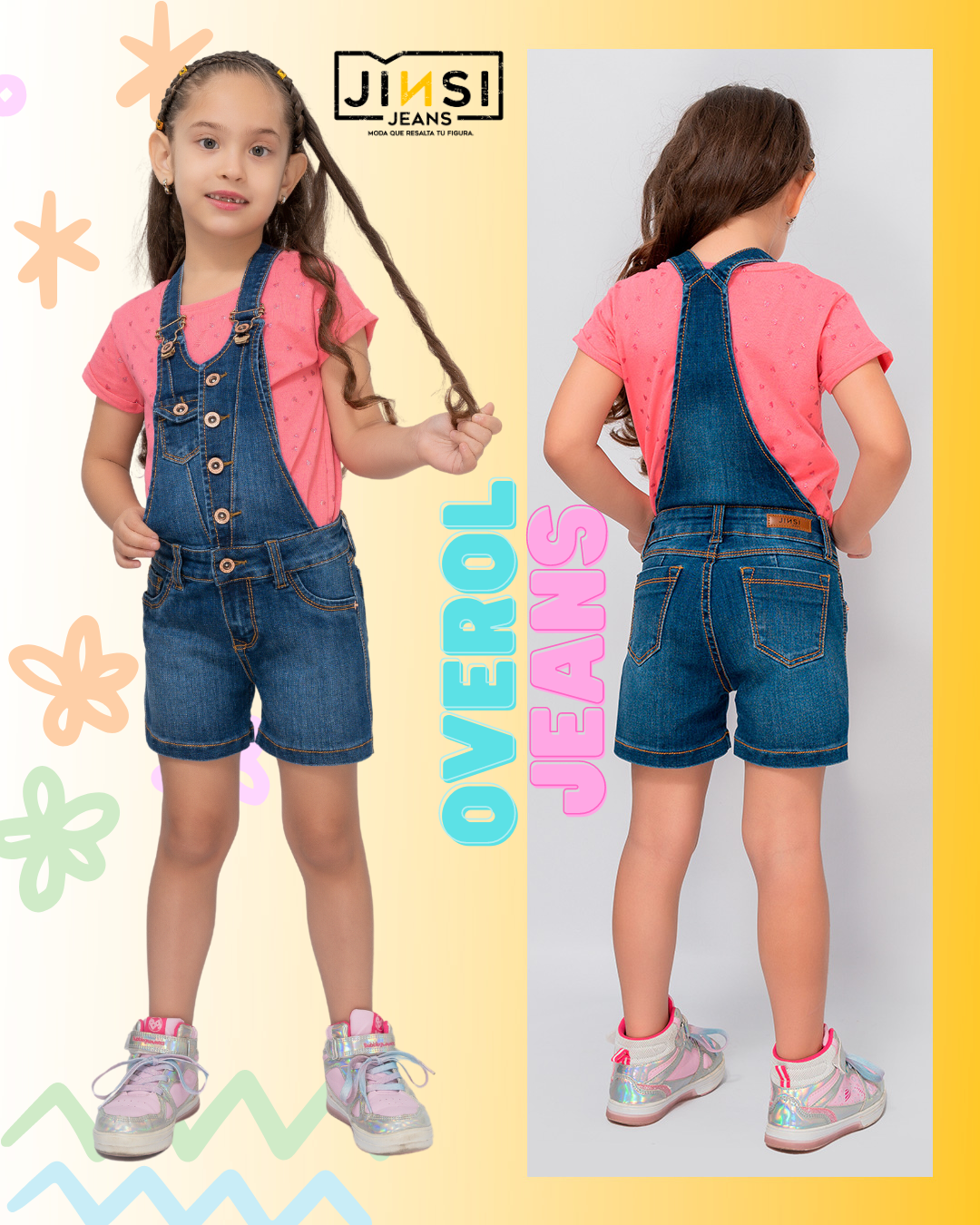 overol short jean niña
