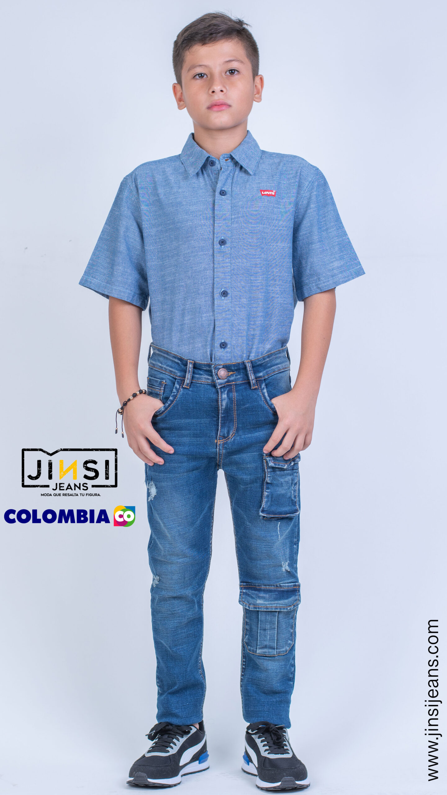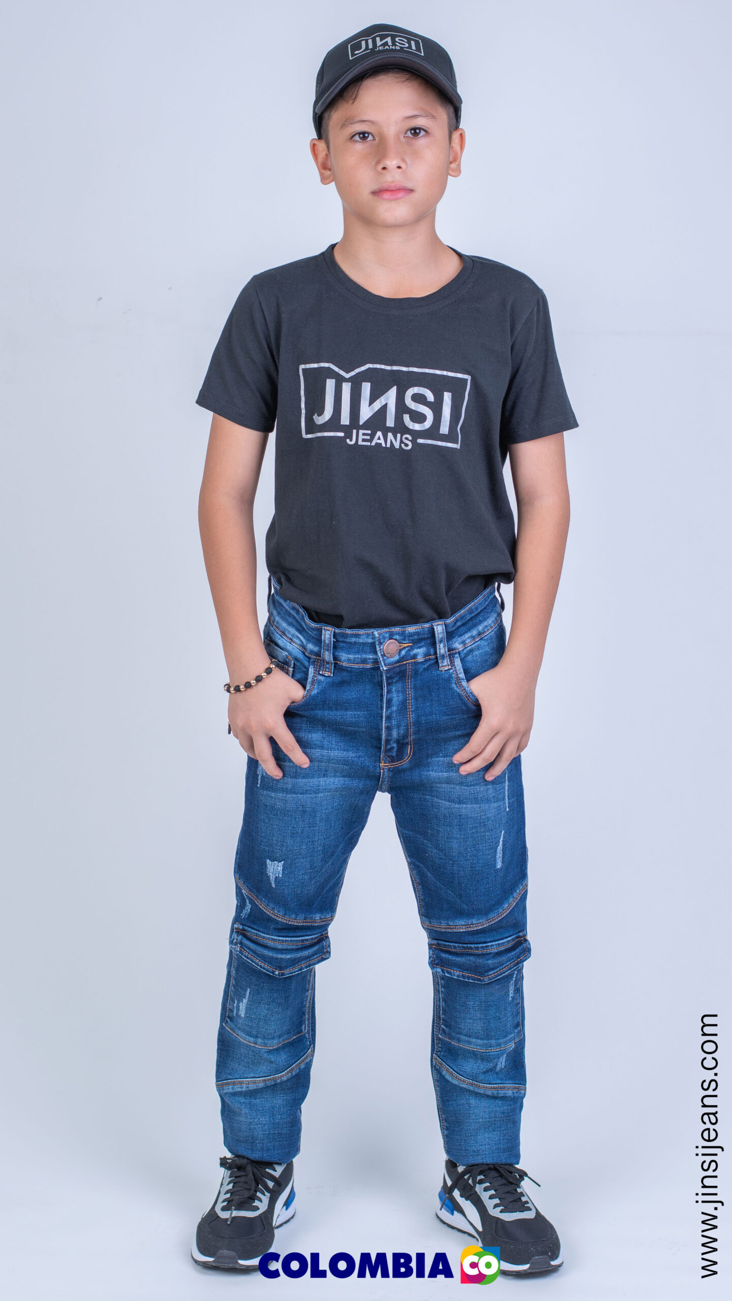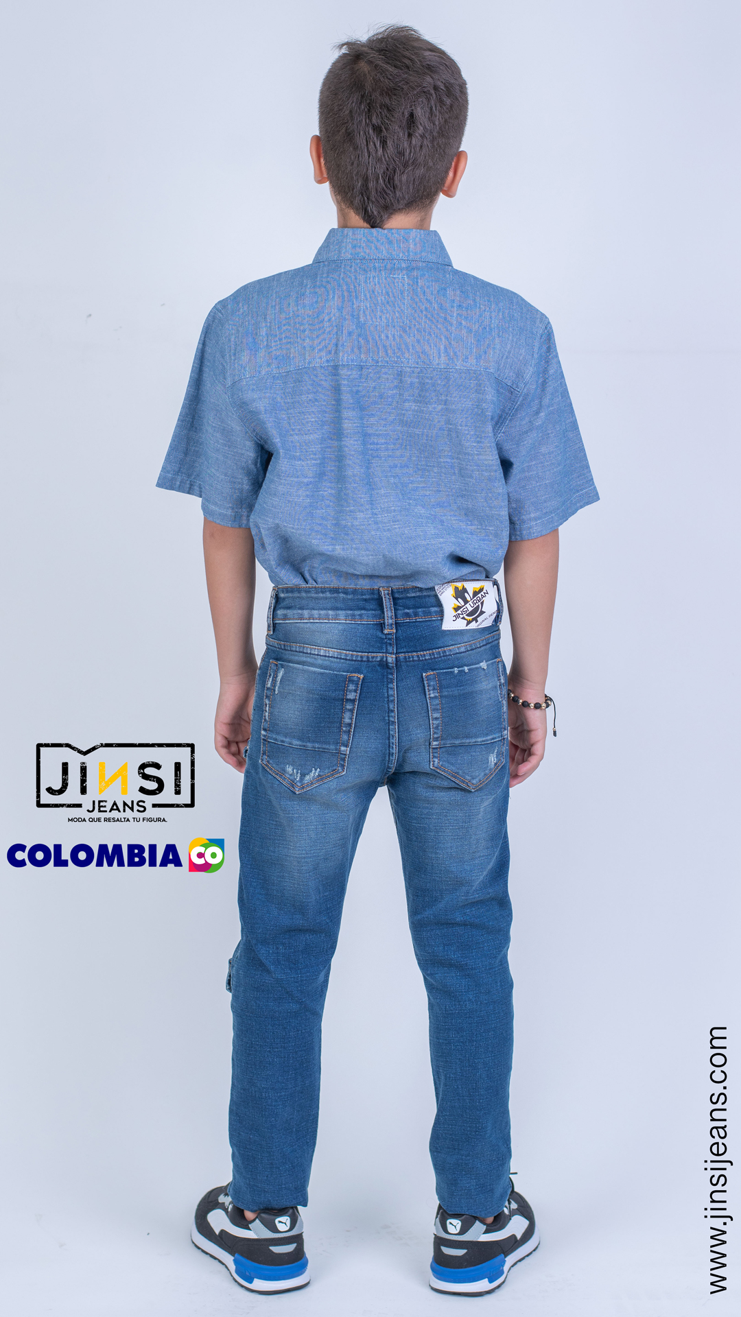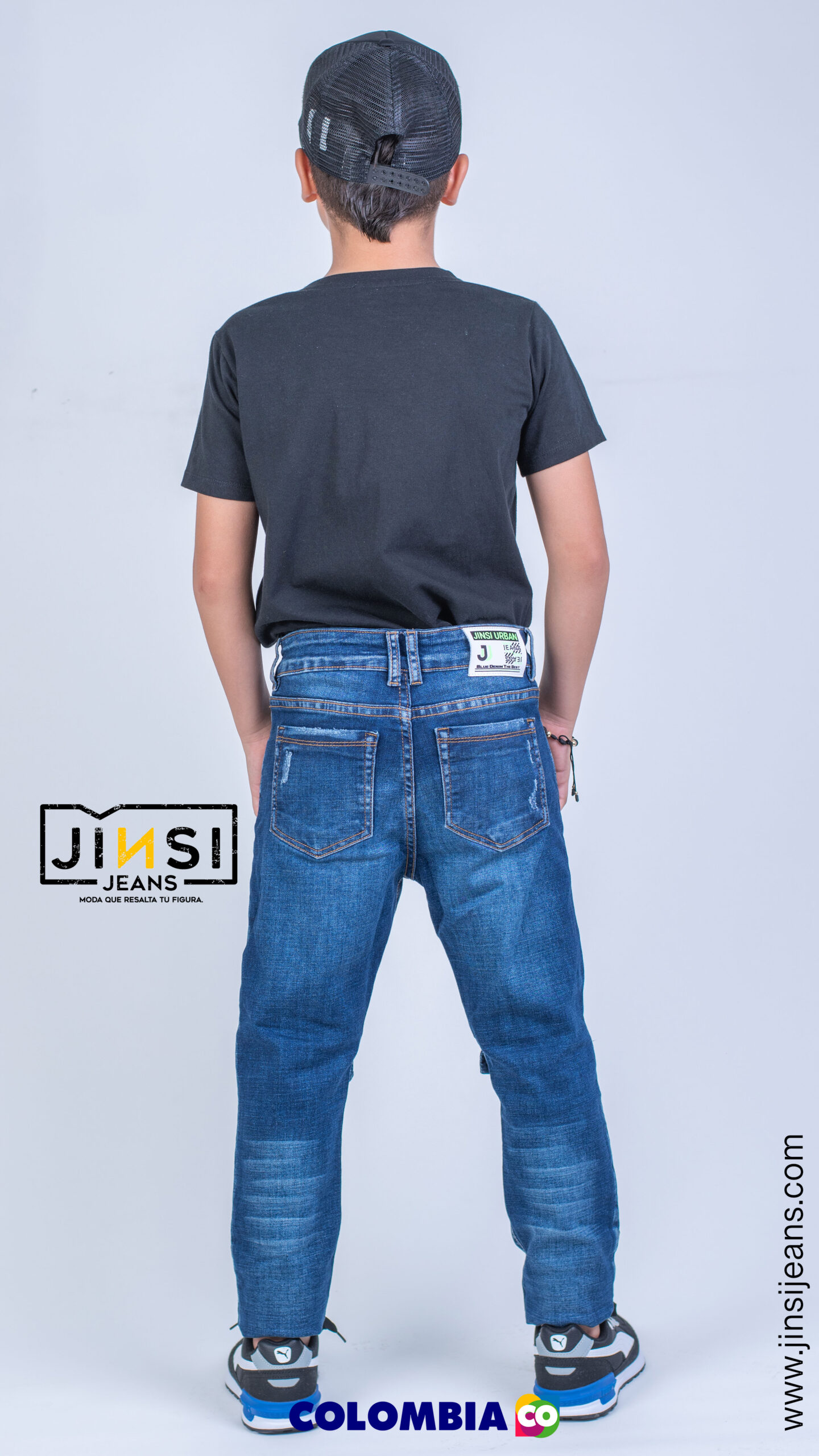 Pantalón jean para niño elaborado en tela Denim (Mezclilla), diseñado para dar comodidad y frescura a la prenda manteniendo objeto de mantenerse infantil, con la idea de que un pantalón diste de un diseño para mujer. Confeccionado con telas con propiedades semistrech que permite una mediana elongación y con tolerancia a procesos de lavado. Alta solidez del color y brillo de la tela. Pretina anatómica y tiro alto.